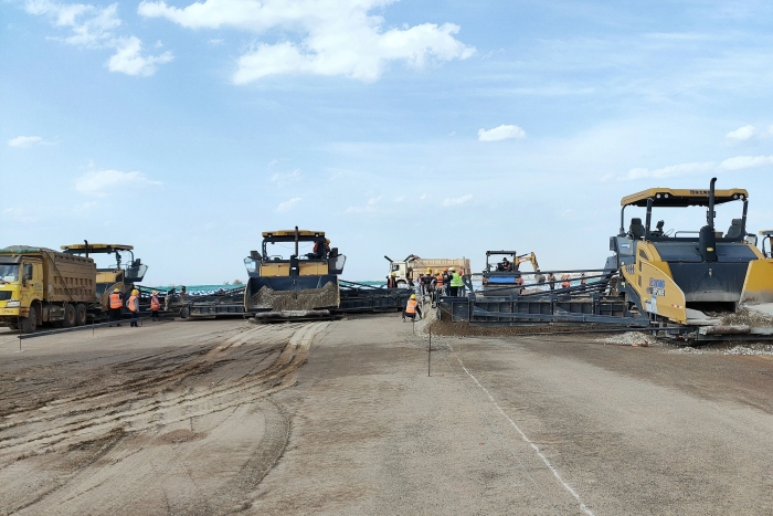 跑道要具备良好的平整性和光滑性,需承受高强度的飞机起降冲击,保证极端气候条件下的使用性能不受影响。徐工摊铺机以先进的技术强大的性能、出色的施工表现,确保了每一个工序的精准、高效和安全推进。