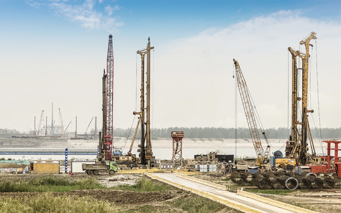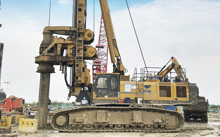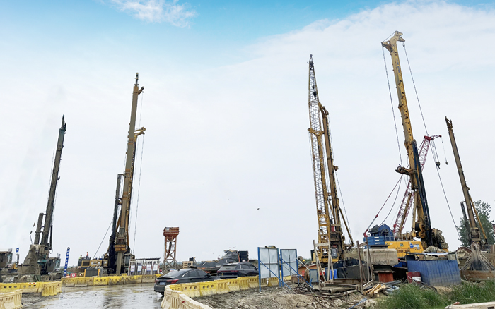 徐工XR550D、XR580HD等多台徐工大吨位旋挖钻机群凭借精湛的技术和卓越的性能,成功攻克了地层复杂、工期紧迫等多重难题,平均成孔周期68小时,全面提速大桥桩基础建设。