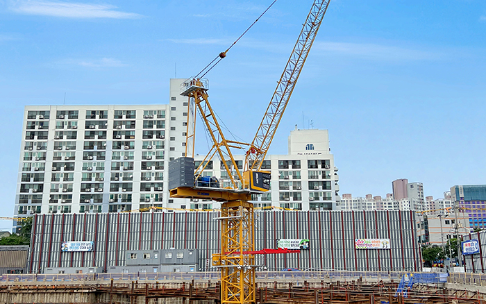 在韩国首尔,徐工塔机参建当地知识产业园项目,蓝天白云之下,两台徐工XGL300-18S格外耀眼。韩国建筑密度大,项目施工空间较为有限,动臂塔机充分满足当地建设需求。