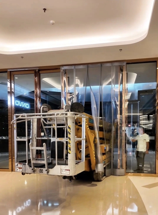 第一关是商场内部空间有限的通道和门廊,徐工XGS26X-Li凭借仅0.99米的整机宽度通过狭窄的门厅,避免了拆门、扩口等繁琐准备。