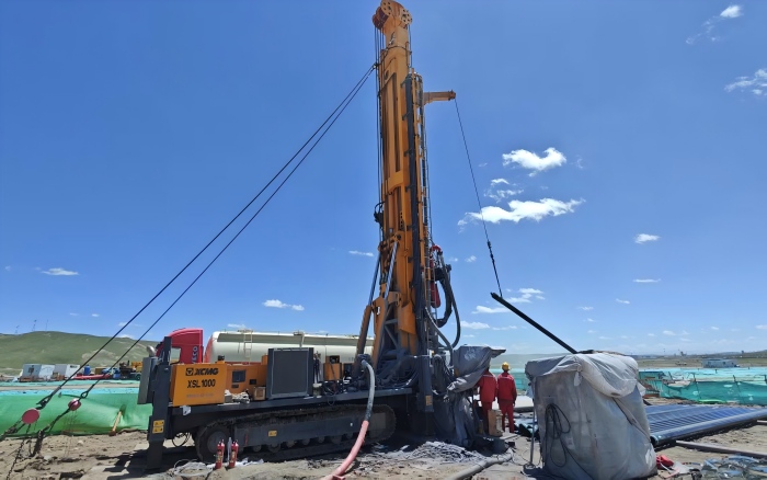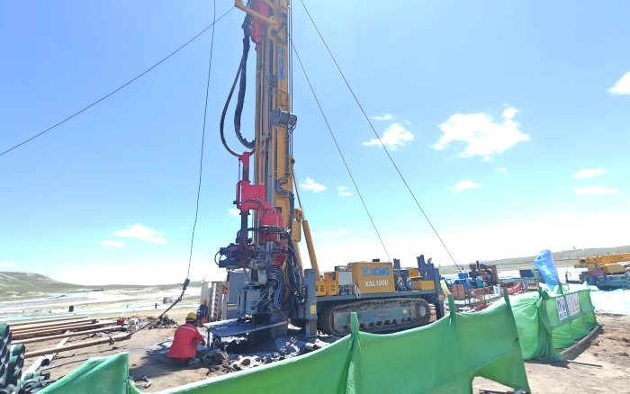 在严苛的高原环境中,徐工XSL1000深井钻保持500m/天的钻进深度,缩短了单口地热井的施工周期。对此,施工方负责人给予高度评价:“徐工XSL1000深井钻的稳定性与可靠性远超我们的预期,实实在在为我们降低了整体施工成本,是我们这次施工的‘功臣’。”