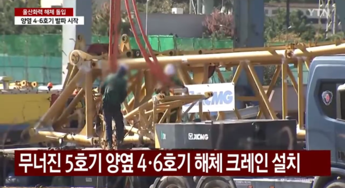当地时间11月6日14时许,韩国蔚山市火力发电厂一座63米高、即将拆除的锅炉塔倒塌,现场大量结构件倾覆、钢筋扭曲断裂,多名现场作业工人被困,情况危急。来自徐工的起重机设备、救援团队第一时间参与救援。