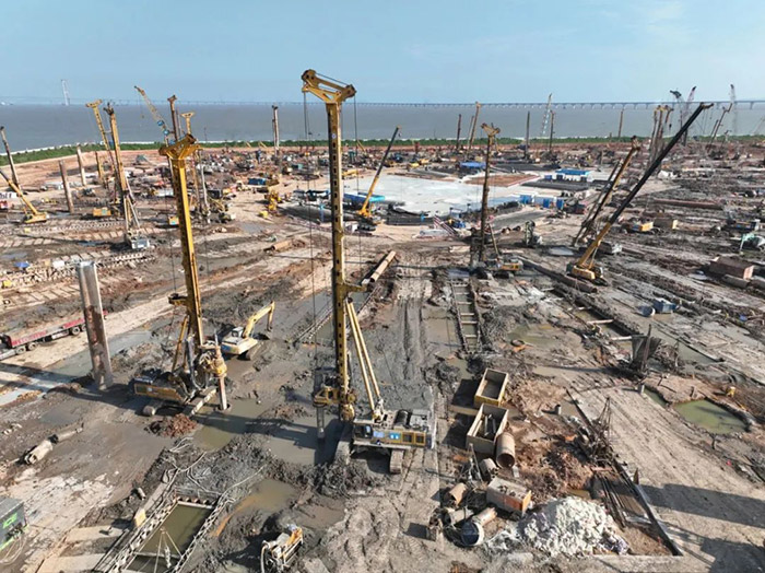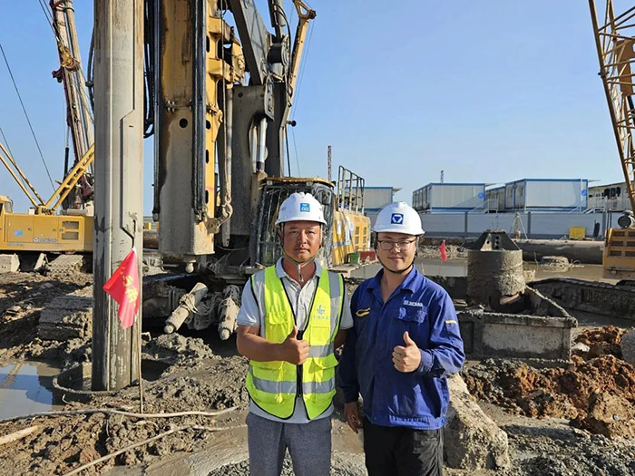 旋挖钻机群不间断施工的同时,徐工技术人员与服务团队全天候走访巡检,有力保障项目工期节点。