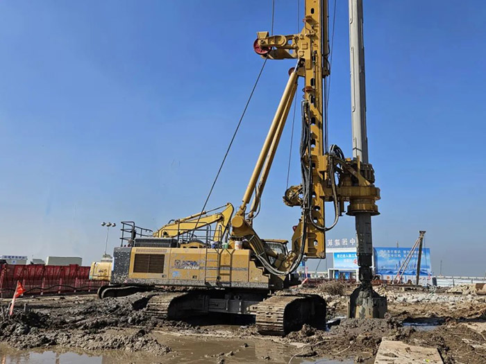 项目施工地层为中风化、微风化的泥岩和沙岩,且10m以下有淤泥层,施工工艺复杂、质量控制难度大、施工难度高。经过多方衡量,最终,项目方选用徐工旋挖钻机进行桩施工。